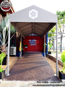 วันนี้เราได้รับคำเชิญจาก PR ของร้าน "อำแดงไต้ฝุ่น" ให้เข้ามารีวิวสถานที่ตั้งใหม่ล่าสุดอันสวยงามอลังการอยู่ติดริมแม่น้ำเจ้าพระยาภายในโครงการบางกอกสแควร์ถนนพระราม 3 โดยปัจจุบันได้รับการการันตีเรื่องความอร่อยเด็ดจาก Michelin Guide ประเภท The Plate ถึง 2 ปีซ้อน (2020 และ 2021) ซึ่งเราเคยแวะมาทานก่อนหน้าที่จะได้รับรางวัลก็ยืนยันได้อีกเสียงเลยว่าของเขาดีมากจริงๆ ส่วนวิธีการเดินทางด้วยรถยนต์ส่วนตัวให้ปักหมุดแผนที่มาตามชื่อร้านจะพบกับลานจอดขนาดกว้างขวางสามารถเลือกช่องว่างได้ตามสะดวก ถ้าใช้บริการขนส่งสาธารณะก็นั่ง BRT ลงสถานีวัดปริวาสแล้วออกแรงเดินเท้าอีกประมาณ 300 เมตรก็จะพบเรือนไทยเก่าสีน้ำตาลโบราณ 2 ชั้นติดสวนสาธารณะติดริมแม่น้ำเจ้าพระยา พร้อมสัญลักษณ์รูปกังหันทำจากก้ามปูบนตราหกเหลี่ยมสีแดงกับชื่อร้านที่เขียนด้วยตัวอักษรภาษาไทย/อังกฤษสีทองบนพื้นสีน้ำเงินเข้มแบบนี้แสดงว่ามาถึงแล้ว ซุ้มทางเข้าเป็นหลังคาทำจากผ้าใบสีเทายื่นแนวตรงนำทางไปสู่ตัวบ้าน มีจุดเช็กอินแรกชวนให้ถ่ายรูปอวดเพื่อนนั่นก็คือป้ายทำจากหลอดไฟนีออนสีฟ้าบนพื้นกระเบื้องสีแดงสดใสดูทันสมัย สำหรับการตกแต่งด้านในจะเป็นอย่างไรนั้นเราเข้าไปดูพร้อมๆกันเลยครับ