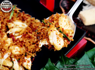 อาหารจานแนะนำต่างๆทยอยมาเสิร์ฟบนโต๊ะเริ่มต้นกันที่ "กุ้งแม่น้ำเผา" ขนาด 3 ตัว 1 โลราคา 567 บาท เป็นกุ้งจับจากแม่น้ำสดๆตัวใหญ่เท่าฝ่ามือผ่ากลางหลังแล้วกางออกให้เป็นทรงผีเสื้ออย่างสวยงาม ย่างลงบนเตาถ่านไม้แบบโบราณด้วยวิธีการลับให้เปลือกด้านนอกติดไหม้นิดๆส่งกลิ่นหอมกับเนื้อข้างในสีขาวอวบแน่นพร้อมมันบนหัวซึ่งสุกฉ่ำกำลังดี เสิร์ฟพร้อมน้ำจิ้มซีฟู้ดสูตรพริกสีเขียวสดใสหนักกระเทียมรสเปรี้ยวหอมเปลือกมะนาวนำเค็มอมหวานจี๊ดจ๊าดโดนใจ ส่วนวิธีการทานสามารถทำได้หลายสูตรทั้ง 1. ใช้ช้อนตักมันจากหัวกุ้งนำเข้าปากทันทีเพื่อลิ้มรสความหอมนวลจากธรรมชาติแล้วตัดความเลี่ยนด้วยน้ำจิ้มซีฟู้ดอีกคำ 2. ใช้ส้อมค่อยๆเลาะเนื้อกุ้งให้หลุดจากเปลือกอย่างง่ายดายแล้วนำเข้าปากเพื่อสัมผัสถึงความหวานเด้งกรุบกรอบดังสนั่นประสาทสู้ฟันสุดๆ 3. ราดมันกุ้งพร้อมน้ำจิ้มซีฟู้ดบนข้าวสวยแบบฉ่ำๆก่อนคลุกให้เข้ากันแล้วนำเข้าปากสุดฟิน 4. เอาเนื้อกุ้งจิ้มกับมันแทนซอสก็อร่อยสะใจไปอีกแบบเพราะที่ร้านเขารับมาเฉพาะตัวใหญ่สดเป็นๆทุกวันจึงไม่ต้องขับรถไปถึงจังหวัดอยุธยาก็ได้อารมณ์เดียวกันครับ