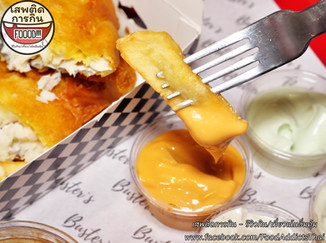 ปิดท้ายด้วยเครื่องดื่มเป็นมิลค์เช็คปั่นแก้วใหญ่ราคาแก้วละ 95 บาท เราสั่งมาชิมอีก 2 รสชาติคือช็อกโกแลต/สตรอเบอรี่ มันคือนมรสช็อกโกแลตที่เข้มข้นขมกว่าปกติเอามาปั่นจนเป็นเนื้อครีมกล้ายกับกำลังกินไอศครีมปั่นส่วนรสสตรอเบอรี่รสชาติก็เหมือนกับนมบรรจุกล่องที่ขายตามท้องตลาด แต่สิ่งที่ทำให้แตกต่างคือไม่มีเกล็ดน้ำแข็งมากวนใจเวลาดื่มแม้แต่น้อย เพิ่มความหอมมันด้วยวิปปิ้งครีมให้ความหวานอ่อนๆยิ่งเข้ากับมิลค์เช็คเนื้อเนียนๆขึ้นไปอีกขั้นเหมือนที่ร้านเอานมไปแช่แข็งก่อนมาปั่นให้เป็นเนื้อไอศครีม ได้ดื่มแล้วรู้สึกเหมือนถูกย้อนเวลากลับไปเป็นเด็กอีกครั้งเลยครับ จานสุดท้ายเมื่อเราทานทุกอย่างเสร็จแล้วก็เดินไปบอกที่ครัวให้ทำมาเสิร์ฟคือ "ช็อกโกแลตยี่ห้อ Mars ชุบแป้งทอดทานกับไอศครีมวนิลา" ราคา 75 บาท ใช่แล้วมันคือช๊อกโกแลตยี่ห้อ Mars ทั้งแท่ง เอาไปชุบแป้งทอดคล้ายๆกับแป้งขนมโป้งเหน่งจนด้านนอกกรอบ แป้งด้านในนุ่มฟูคล้ายๆแป้งเค้กส่วนช๊อกโกแลตที่แกนกลางละลายผสมกับเนยถั่วที่เป็นไส้ด้านในสุด ได้ทั้งความกรอบ/ร้อน/หวานและเหนียวติดฟันนิดๆทานกับไอศครีมวนิลาที่หวานน้อยเพิ่มความเย็นตัดกันได้อย่างลงตัว ต้นกำเนิดของขนมชนิดนี้บ้างก็ว่ามาจากออสเตรเลียหรือสก๊อตแลนด์พอได้มาทานจริงๆแล้วมันก็หวานอร่อยลงตัว ต้องชมคนที่คิดว่าช่างหามาทำจริงๆครับผม สรุปมื้อนี้อิ่มมากอร่อยมากแถมได้ประสบการณ์อาหารที่แปลกใหม่กลับบ้านไป ส่วนใครกลัวว่าจะทานได้ไม่ถูกต้องก็ไม่ต้องเป็นห่วงเพราะที่ร้านนี้ให้ทานได้หลายซอสจะทานแบบอังกฤษแท้หรือสไตล์ไทยๆก็อร่อยถูกใจทั้งหมดอย่างแน่นอน วันนี้ร้าน Buster’s Fish And Chips - Comfort Food & Drinks รับคะแนนความอร่อยคุ้มค่าไป 5 ดาวเต็มเลยครับ 🌟🌟🌟🌟🌟