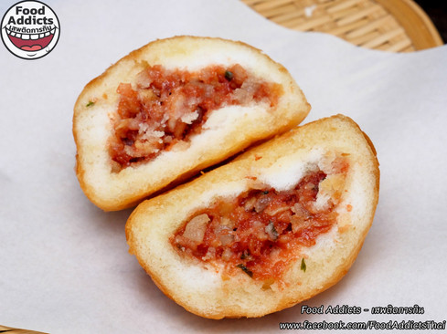 กินของหวานเสร็จก็ต่อกันที่อาหารทานเล่นของที่ร้านนี้สั่งมาเป็นซาลาเปาทอด 2 ไส้นั่นคือ "ซาลาเปาไส้หมูแดงทอด" และ "ซาลาเปาไส้ครีมลาวาทอด" ราคาลูกละ 29 บาท ตอนแรกกะว่าสั่งมาลองแบบไม่ได้คิดอะไรมากแต่พอกัดเข้าไปสิ่งที่สัมผัสดีเป็นลำดับแรกคือ 1. ความกรุบกรอบฟูราวกับเป็นเกราะสีทองแต่ไม่อมน้ำมันและไร้กลิ่นเหม็นหืนของน้ำมันเก่า 2. แป้งเป็นแบบซาลาเปาโบราณเนื้อแน่นฟองอากาศละเอียดคล้ายกับบัตเตอร์เค้กจึงไม่เหม็นกลิ่นแอมโมเนียแบบที่ร้านสมัยใหม่นิยมใช้ให้ขึ้นฟูสวยงามกัน 3. ไส้แน่นรสชาติดีเริ่มจากหมูแดงปรุงเป็นแบบบาร์บีคิวจีนรสหวานหอมเครื่องเทศสมุนไพรอัดแน่นและเนื้อหมูแดงย่างสับหยาบเคี้ยวสนุก ส่วนไส้ครีมลาวาทำจากไข่เค็มแดงที่เนียนละเอียดหวานตัดเลี่ยนกำลังดีไหลเยิ้มเข้ากับแป้งรสหวานอ่อนๆที่คลุมอยู่ด้านนอกได้ดีสุดๆ โดยรวมคุ้นมากแต่นึกไม่ออกว่าเคยทานที่ไหนเลยสอบถามพนักงานได้ความมาว่า "ซาลาเปาทอดของร้านนี้ขึ้นรถทัวร์มาจากปักษ์ใต้ทุกวันเป็นสูตรจีนโบราณแท้ๆ" จึงอร่อยเทียบเท่ากับไปทานถึงถิ่นซึ่งผมกล้ารับประกันเลยว่าเป็นของแท้แน่นอนครับผม