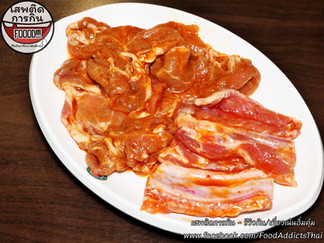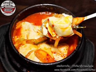 เมนูแรกที่มาเสิร์ฟก่อนเลยคือปิ้งย่างที่ตอนแรกเรากะว่าจะไม่สั่งแต่เจ้าของร้านชาวเกาหลี (พูดไทยได้) แนะนำว่าให้สั่งมาทานคู่กับเมนูอาหารเกาหลีอื่นๆภายในร้านจะทำให้อร่อยเพลินมากยิ่งขึ้น และไม่ต้องห่วงว่าต้องกินอาหารพร้อมกับแยกประสาทสัมผัสส่วนนึงมาย่างวัตถุดิบเพราะพนักงานจะจัดการให้เอง โดยเตาของที่นี่เป็นเตาถ่านที่ฟืนร้อนๆอยู่เฉพาะตรงกลางส่วนด้านข้างสามารถคีบเนื้อมาพักได้ไม่ต้องกลัวไหม้แต่จะได้ทานเนื้อที่อุ่นร้อนอยู่ตลอดๆ โดยเนื้อสัตว์ย่างวันนี้เราสั่งมา 3 จานได้แก่ 1. Hanjungsal หรือเนื้อหมูส่วนสะโพกราคา 320 บาท เป็นเนื้อหมูสีชมพูอ่อนแทรกไขมันละเอียดเคี้ยวหนึบคล้ายกับส่วนคอหมูย่างรสชาติไขมันอร่อยกำลังดีเวลาทานก็ห่อกับผักสดๆช่วยลดความเลี่ยนได้ดีเลยครับ 2.Daeji Galbi หรือเนื้อหมูส่วนซี่โครงราคา 320 บาท ที่ร้านเขาเลาะเอาแต่เนื้อมาเสิร์ฟให้เต็มๆจานหมักมากับซอสรสหวานอ่อนๆ เนื่องจากเป็นเนื้อที่ถูกทำเป็นแผ่นบางจึงทำให้ย่างสุกง่ายกว่าไม่เสียเวลาเยอะ 3. Gochujang Samgyupsal หรือหมูสามชั้นหมักโคชูจัง ราคา 320 บาท เป็นหมูสามชั้นหมักรสหวานหอมพริกโคชูจังอ่อนๆสีแดงสวยแต่ไม่เผ็ดร้อนอย่างที่คิดทานได้ง่ายๆทั้งเด็กและผู้ใหญ่ อย่างที่บอกไปตอนแรกแล้วว่าร้านนี้เขามีพนักงานย่างให้เสร็จแล้ววางไว้รอบเตาสำหรับทานคู่กับเมนูอาหารเกาหลีอื่นๆจึงไม่ต้องมาพะวงกลัวว่าหมูจะไหม้หรือคีบทานได้ไม่ทัน เรียกได้ว่ามื้อนี้วัตถุดิบปิ้งย่างกลายเป็นแค่เมนูเสริมไม่ใช่เมนูหลักแต่อย่างใดครับผม