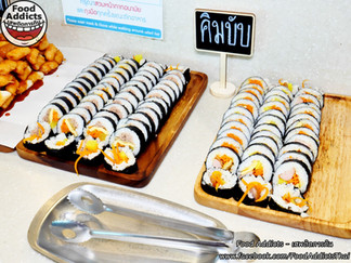 โซนต่อไปคืออาหารเกาหลีพร้อมทานต่างๆอีกมากมายเริ่มต้นด้วย 1. รามยอนหรือบะหมี่กึ่งสำเร็จรูปต้มสดใหม่พร้อมทานตรงเคาน์เตอร์ด้านหลังส่งตรงให้ถึงโต๊ะทั้ง ซัมยังซองสีดำรสเผ็ดสุดๆแบบแห้ง/นงชิมรสเนื้อวัวน้ำซุปเผ็ดร้อน/กิมจิรสชาติเปรี้ยว,เผ็ดกลมกล่อม/จาจังมยอนซอสถั่วดำแบบแห้ง/จินรามยอนรสดั้งเดิมน้ำซุปเนื้อแบบไม่เผ็ด 2. คิมบับหรือข้าวปั้นห่อสาหร่ายสอดไส้ทูน่าไส้กรอกไก่พร้อมไข่เจียวและผักต่างๆได้สารอาหารครบถ้วนถือเป็นเมนูยอดนิยมในช่วงเวลาเร่งรีบของชาวเกาหลี 3. โชต๊อกหรือแป้งต๊อกเสียบไม้ย่างสลับกับไส้กรอกไก่เคลือบด้วยซอสสีแดงฉ่ำวาวรสชาติเผ็ดหวานเหมือนไก่ทอดหน้าร้านไว้กินเพลินๆระหว่างรอต๊อกโปกีหม้อไฟเดือดได้ที่ 4. ผลไม้สดให้หยิบเองสองอย่างคือสับปะรดกับแตงโมหวานฉ่ำ 5. จับแชหรือผัดวุ้นเส้นแบบเกาหลีเหนียวนุ่มหนึบหนับรสชาติเค็มหวานกลมกล่อมกรุบกรอบผักหอมน้ำมันงา 6. หมูผัดซอสเกาหลีทำจากสันคอสไลด์บางๆผัดซอสบูลโกกิสูตรพิเศษใส่กะหล่ำปลีและหอมหัวใหญ่ซอยลงไปเหมาะสำหรับราดบนข้าวสวยเป็นที่สุด 7. มันหวานเชื่อมทอดในน้ำมันเพื่อไล่ความชื้นส่วนเกินออกเหลือแต่ความหวานอร่อยเคี้ยวหนึบ จัดการตักใส่ถาดมาลองชิมอย่างละนิดเดี๋ยวค่อยเติมครับ