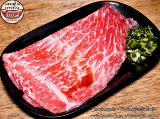 เมนูต่อไปก็เป็นเนื้อวัวนำเข้าจากประเทศญี่ปุ่นคือ "เนื้อซุปเปอร์บูลโกกิวากิว" ไม่แน่ใจว่าเป็นส่วนไหนของวัวแต่ยังคงใช้ 3 สายพันธุ์หลักเหมือนเคยคือ Kobe Wine Beef / Kagoshima และ Miyazaki แทรกไขมันระดับ A4 ถึงแม้จะมีไขมันแทรกไม่ละเอียดเท่าส่วนคารูบิแต่ก็มาจากวัวตัวเดียวกัน ความนุ่มนวลพอๆกันแต่รสชาติเข้มข้นกว่าเล็กน้อยสมกับเป็นเนื้อวัวคุณภาพระดับพรีเมี่ยม เมนูนอกจากนั้นเป็นเนื้อวัววากิวสายพันธุ์ไทยทั้งหมดเริ่มจาก "เนื้อใบพายซุปเปอร์วากิว" เป็นส่วนที่สายเนื้อวัวคุ้นเคยเรื่องความนุ่ม-หอมมีชั้นไขมันแทรกละเอียดเป็นลายหินอ่อนตามธรรมชาติรสชาติเข้มข้นทานง่ายๆสไตล์เนื้อไทย หากอยากทานเนื้อวัวส่วนที่เคี้ยวกรุบกรอบหั่นเสิร์ฟมาหนา-ชิ้นใหญ่เคี้ยวเต็มคำไขมันแทรกคุณภาพสูงให้สั่งเป็น "ลิ้นวัวซุปเปอร์หนานุ่ม" ย่างด้านนอกให้เกรียมๆเนื้อในชุ่มฉ่ำบีบเลมอนหรือโรยแค่เกลือสีชมพู+พริกไทยดำก็อร่อยเด็ดสุดๆ ถ้าอยากสัมผัสรสของเนื้อวัวคุณภาพดีโดยไม่ผ่านความร้อนให้สั่งเป็น "กิวทาทากิ" ยำเนื้อแบบเย็นสไตล์ญี่ปุ่นทานคู่กับกระเทียมสด-ยำต้นหอมบีบมะนาวสดช่วยเพิ่มความสดชื่นตัดไขมันและเลี่ยนของเนื้อเหลือแต่รสชาติอร่อยหอมหวานกับกลิ่นของวากิวคุณภาพดีเต็มปากในทุกๆคำที่เคี้ยวครับ