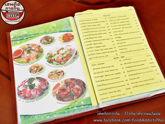 เมนูที่ร้านเป็นแฟ้มหน้าปกหนังขนาดใหญ่โดยแต่ละเล่มมีการเรียงลับดับเมนูไม่เหมือนกันสักหน้าเอาเป็นว่าขอยึดตามแฟ้มแรกที่หยิบมาแล้วกันครับ เริ่มจากหน้าแรกบ่งบอกถึงจำนวนสาขาที่เรากล่าวเอาไว้เบื้องต้นแต่เนื่องจากมีการแพร่ระบาดของเชื้อไวรัส Covid-19 ทำให้เหลือเพียงแค่ 6 สาขาจากทั้งหมด 14 สาขา เมนูหน้าต่อไปเริ่มด้วยความเป็นมาของวัตถุดิบต่างๆที่ใช้ในร้านและ Signature อย่างปลาช่อนเผาเกลือใครไม่ทานก็มีปลาแรดเผาเกลือ/ปลากระพงเผาเกลือ/ปลาหมึกย่างถ่านและกุ้งเผาให้สั่ง ราคาเริ่มต้นที่ 200-260 บาท ส่วนกุ้งแม่น้ำก็คิดราคาตามน้ำหนัก เมนูอาหารอีสานทั้งส้มตำ-ลาบ-น้ำตกใช้วัตถุดิบหลากหลายราคาเริ่มต้นที่ 40-250 บาท เมนูยำราคาเริ่มต้นที่ 60-160 บาท เมนูของทอดราคาเริ่มต้นที่ 40-250 บาท ถือว่าขายราคาถูกมากๆจนน่าเหลือเชื่อเลยครับผม