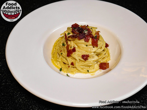 ชุดสุดท้ายเป็นเมนูพาสต้าสไตล์อิตาเลียนในบุฟเฟ่ต์ที่ฝีมือไม่ใช่เล่นนั่นก็คือ "สปาเก็ตตี้คาโบนาร่า" พาสต้าเส้นกลมน่าจะเบอร์ 2-3 เอามาลวกให้สุกกำลังดีระดับ Al dente คลุกลงในซอสผสมพาร์เมซานชีสวิปครีมเข้มข้นปรุงรสมาเค็มกลมกล่อมหอมพริกไทยและพาสลี่ย์สับ ตกแต่งให้สวยงาม-กรุบกรอบด้วยเบคอนทอดสีน้ำตาลท็อปปิ้งที่ด้านบนสุดก่อนเสิร์ฟ โดยรวมถือว่าอร่อยเกินหน้าเกินตาบุฟเฟ่ต์โรงแรมในกรุงเทพฯไปหลายเจ้าๆมากครับ และจานสุดท้ายก็คือ "สปาเก็ตตี้เบคอนพริกแห้ง" รสชาติสุดพื้นฐานไม่ซับซ้อน ใช้เส้นมีความหนา-ลวกมาสุกระดับเดียวกับจานที่แล้วผัดน้ำมันมะกอกปรุงรสแค่เกลือพริกไทย ใส่เบคอนกรอบ/พริกแห้ง/มะเขือเทศเชอร์รี่และมะกอกดำลงไปคลุกพอเข้ากัน สุดท้ายโรยหน้าด้วยผงชูรสฝรั่งหรือพาร์เมซานชีสก่อนเสิร์ฟมีรสเค็ม-เผ็ดนัวหอมกระทะผัดทานง่ายไม่ซับซ้อนแต่ตักใส่ปากไม่หยุด ตอนนี้อิ่มมากจนแน่นท้องและหนังตาเริ่มหย่อนแล้วเรียกน้องพนักงานมาคิดเงินครับ