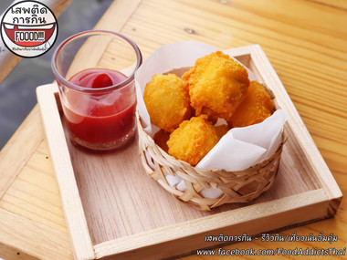หมดเมนูจานเส้นก็มาอร่อยกันต่อกับของทานเล่นจานแรกเป็น "ลูกชิ้นหมูปิ้งนครปฐมแท้ๆ" ชุดละ 40 บาท ให้มา 4 ไม้ เป็นลูกชิ้นหมูเนื้อละเอียดคล้ายลูกชิ้นปลาย่างทานกับน้ำจิ้มมะขามเปียกรสเปรี้ยวหวานเผ็ดนิดๆดีมาก แต่ตัวลูกชิ้นส่วนตัวไม่ค่อยประทับใจเท่าไหร่อาจจะเป็นสูตรของทางร้านเขาก็ได้แล้วแต่คนชอบครับ จานต่อมาเป็นของทอดคือ "ฟิชบอลชีส" ราคา 49 บาท ใน 1 ชุดให้มา 6 ลูก เป็นลูกชิ้นปลาเนื้อแน่นๆสอดไส้ชีสหอมมันคลุกกับเกล็ดขนมปังทอดจนสีเหลืองทองเสิร์ฟคู่กับซอสมะเขือเทศ เป็นเมนูทานเล่นที่ดูง่ายไม่ซับซ้อนและเด็กๆน่าจะชอบครับผม จานสุดท้ายคือ "กุ้งสติ๊ก" ราคา 49 บาท หรือที่ร้านอาหารในกรุงเทพมักจะเรียกว่าขลุ่ยกุ้งทอดกรอบหอมกลิ่นสามเกลอหอมๆทานกับน้ำจิ้มบ๊วยรสเปรี้ยวอมหวาน ถ้าไม่ติดว่าร้านอยู่ในเขตวัดเมนูนี้ถือว่าเป็นกับแกล้มชั้นดีได้เลยจ้า