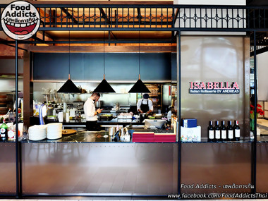 ส่วนร้านที่ 5 นี้มีชื่อว่า "อิซาเบลล่า อิตาเลียน โรติสเซอรี บาย อันเดรีย" ร้านอาหารอิตาเลียนแห่งใหม่ของเชฟ "อันเดรีย โบนิฟาโช" เจ้าของร้านอาหารอิตาเลียนชื่อดังระดับตำนานเมืองหัวหิน เน้นไปที่เมนูเด็ดอย่างพิซซ่าอบเตาถ่าน-โฮมเมดพาสต้าและไก่อบในเตาย่างสุดพิเศษนำเข้าราคาแพงจากประเทศอิตาลี โดยเน้นเป็นครัวเปิดโล่งเพื่อให้ลูกค้าสามารถมองเห็นการทำงานของเชฟได้อย่างชัดเจนในทุกมุม ส่วนบรรยากาศภายในเน้นความเป็นบิสโทรคล้ายกับกำลังนั่งทานข้าวภายในบ้านสไตล์ยุโรปย้อนยุคสบายๆ เน้นพื้นไม้สีเข้มกับผนังก่ออิฐแดงพร้อมเฟอร์นิเจอร์สุดหรูให้อารมณ์แบบเดียวกับร้าน Fine Dinning หากใครไม่สะดวกนั่งทานที่ร้านเขามีเมนูอร่อยด่วนอย่าง "พิซซ่าอบเตาถ่าน" เริ่มต้นเพียงชิ้นละ 80 บ. ส่วนรายการอื่นๆจะมีอะไรน่าสนใจบ้างนั้นมาดูที่เล่มรายการอาหารฉบับเต็มกันครับ