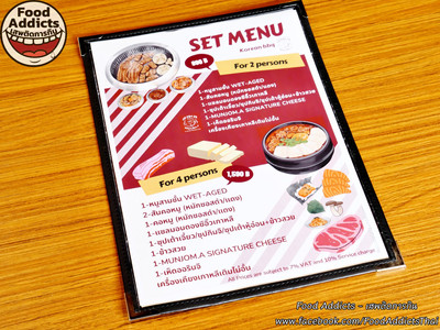 บรรยากาศและการตกแต่งภายในเน้นสไตล์สตรีทผสมกับ Loft เริ่มจากพื้นปูนเปลือยฝ้าด้านบนเป็นโครงเหล็กสีดำเปิดให้เห็นท่อดูดอากาศขนาดใหญ่กระจายทั่วบริเวณ ส่วนโต๊ะเก้าอี้ที่ให้บริการถูกแบ่งออกเป็น 4 โซนใหญ่นั่นก็คือ 1. โต๊ะสเตนเลสทำจากถังน้ำมันเก่าทาสีเหลืองล้อมด้วยเก้าอี้กลมบุหนังนั่งสบายสไตล์ Street Food ข้างถนนเกาหลีที่เราคุ้นเคยในซีรีส์ชื่อดัง 2. โต๊ะไม้มีฉากกั้นตกแต่งสไตล์วิทเทจย้อนยุคแบบเกาหลีโบราณนั่งได้ประมาณ 2-4 คน (แต่เราไม่ได้ถ่ายรูปมาเพราะมีของวางเป็นกองสูงดูไม่ค่อยสวยงามเท่าไหร่) 3. โต๊ะไม้ยาวกลางพิเศษร้านไม่มีฉากกั้นนั่งได้ 8 คนสำหรับมาฉลองกันเป็นกลุ่มใหญ่หรือจะต่อโต๊ะยาวรองรับลูกค้าได้สูงสุด 20 คน 4. ห้องส่วนตัวสำหรับจัดเลี้ยงแบ่งเป็น 2 ห้องจุได้แค่ 5 คน แต่สามารถเปิดฉากกั้นออกรวมกันเป็นห้องใหญ่พิเศษรองรับได้สูงสุดถึง 10 คน ด้านในมีทีวีสำหรับไว้จัดปาร์ตี้ร้องคาราโอเกะด้วย ส่วนเล่มเมนูอาหารทางร้านให้มาเป็นแผ่น 2 หน้าแบบนี้รายการต่างๆมีทั้ง จานเรียกน้ำย่อย/บาร์บีคิวจานหลัก/ซุปหม้อร้อน/เครื่องดื่ม/ไอศครีมรวมกว่า 44 เมนูราคาเริ่มต้นที่ 59-320 บาท และเมนูชุดสุดคุ้มสำหรับ 2-4 คน ราคาเริ่มต้นที่ 890-1,590 บาท (ไม่รวมเครื่องดื่ม - Vat. และ Service Charge) ถือว่าเป็นระดับราคาตามมาตรฐานทั่วไปต้องมารอดูรสชาติกับปริมาณที่เสิร์ฟกันก่อนครับ