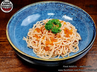 จานของทานเล่นยังไม่หมดแค่นี้ทยอยวางเสิร์ฟบนโต๊ะพวกเราอีกเรื่อยๆเช่น "Grilled Chicken Liver" ราคา 39 บาท ตับไก่ส่งตรงจากฟาร์มมาตรฐานเกรดอนามัยล้างโดยเคล้าแป้งมันเพื่อกำจัดคราบเลือดกลิ่นคาวจนสะอาดหมดจดหมักเกลือสมุทรธรรมดาเสียบไม้ปิ้งควบคุมไฟปานกลางรอผิวด้านนอกสุกแต่ข้างในสัมผัสเนียนละมุนชุ่มฉ่ำเค็มกลมกล่อมถือเป็นอีกหนึ่งเมนูยอดนิยมซึ่งน้องพนักงานแนะนำห้ามพลาดเด็ดขาด / "Grilled Yakitori" ราคา 78 บาท เลือกใช้เฉพาะบริเวณสะโพกติดหนังแทรกไขมันย่างเวลานานเพื่อไล่ความชื้นส่วนเกินออกเด้งกระชับแน่นสู้ฟันเคี้ยวสนุกถึง 2 ไม้เฉลี่ย 39 บาท / "Grilled Pork Belly" ราคา 98 บาท พื้นท้องหมูหรือมีอีกชื่อเรียกหนึ่งนั่นก็คือสามชั้นคัดปริมาณเนื้อแดงสลับแทรกไขมันสมดุลไม่เยอะเกินหั่นชิ้นลักษณะเหมือนสี่เหลี่ยมลูกเต๋าเกรียมกรอบสวยงามจิ้มพริกป่นเจ็ดสีชิจิมิเผ็ดแสบร้อนหอมสมุนไพรฉบับญี่ปุ่นแท้ช่วยตัดเลี่ยนอร่อยลงตัวยิ่งขึ้น / "Mentaiko Spaghetti" ราคา 139 บาท เส้นสปาเก็ตตี้อิตาเลียนเบอร์ 4 เพียงหยิบมือจับต้มน้ำเดือดกดนาฬิกาเพื่อหยุดเวลาประมาณ 8 นาทีคลุกพวงไข่ปลาคอตดองเมนไทโกะสีชมพูแนวพาสเทลบดละเอียดให้เคลือบทุกอณู บรรจุใส่ภาชนะท็อปปิ้งประดับตกแต่งอิคุระไข่แซลมอนแตกระเบิดเต็มปากฟิวชั่นวัตถุดิบสองประเทศได้อย่างอูมามินัวมากครับผม