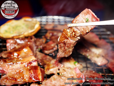 หมดเมนูจานรองได้เวลามาลุยจานหลักวันนี้เราสั่งมาหลายรายการทั้ง "เนื้อวากิวแองกัส" เป็นส่วนสันคอราคา 218 บาท เนื้อแทรกไขมันสวยงามรสชาติเนื้อและไขมันเข้มข้นตามแบบฉบับเนื้ออเมริกา จานต่อมาก็คือ "เนื้อวากิวซี่โครงคารูบิ" ราคา 218 บาท จานนี้เป็นซี่โครงเนื้อวากิวญี่ปุ่นแทรกไขมันสวยงามทางร้านเลาะไขมันส่วนเกินกับเอ็นเหนียวๆออกไปเหลือแต่ความชุ่มฉ่ำรสชาติเนื้อไม่เข้มข้นเท่าแองกัส หมักกับซอสรสหวานเค็มนิดๆเพื่อเพิ่มรสชาติให้กลมกล่อมขึ้นอีกขั้น จานต่อไปเป็น "เนื้อวากิวชัคโรล A3" ราคา 338 บาท รสชาติเนื้อแบบเดียวกับซี่โครงแต่ไม่ได้หมักมาเป็นรสชาติเนื้อที่สดชื่นในปากทานง่ายๆแบบเนื้อวัวญี่ปุ่น 2 จานต่อมาเป็นเนื้อวัวไทยอย่าง "คารูบิ" และ "ริปอาย" ราคาจานละ 98 บาท สอบถามทางร้านเขาใช้เนื้อวัวไทยเฟรนซ์ถึงแม้จะไม่ได้แทรกไขมันสวยแต่เนื้อนุ่มทานง่ายกลิ่นไม่แรงถึงจะราคาถูกแต่คุณภาพถือว่าดีเลยครับ สุดท้ายเป็นอีกเมนูที่มักเสิร์ฟในร้าน Izakaya คือ "คานิมิโสะ" หรือมันปูย่างราคา 248 บาท เป็นมันปูเหลวๆแต่พอย่างแล้วจะรสชาติเข้มข้นยิ่งขึ้น ด้านล่างผสมไข่ปลาปรุงรสเคี้ยวปรุแตกในปาก ย่างแล้วทานเปล่าๆหรือจะราดลงบนข้าวสวยก็อร่อยหอมมันปูกำลังดีไม่แรงแบบหลายๆร้าน