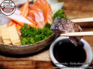 นั่งชิลล์รอเพื่อนกันสักพักก็เริ่มสั่งอาหารเมนูจานแรกที่มาเสิร์ฟคือ "หอยนางรมญี่ปุ่นสดเสิร์ฟพร้อมพอนสึ" ชุดนึงเสิร์ฟให้ 3 ตัวราคา 148 บาท (ตกราคาตัวละ 49 บาท) หอยนางรมสดเนื้อสีขาวเป็นครีมมันไร้กลิ่นคาวทานคู่กับซอสพอนสึรสเปรี้ยว+เค็มท๊อบปิ้งด้วยหัวไชเท้า/ต้นหอมและต้นหอมญี่ปุ่นให้ความหวานสดชื่น หากอยากได้รสชาติของหอยเต็มๆในชุดมีเลมอนให้บีบลงบนตัวหอยแล้วรับประทานได้ทันที พื้นฐานของวัตถุดิบดีอยู่แล้วทานแบบไหนก็ดึงความอร่อยออกมาได้อย่างเต็มที่ เมนูต่อมาคือจานสามัญประจำร้าน Izakaya คือ "หมึกวาซาบิ" ราคา 98 บาท เป็นปลาหมึกหั่นมาชิ้นใหญ่กว่าร้านอื่นเล็กน้อยดองกับหัววาซาบิกรุบกรอบรสชาติเค็มอ่อนๆไม่ติดขม วาซาบิที่ใช้ในจานนี้เป็นแบบขูดสดจึงทำให้หอมสดชื่นกว่าที่อื่น อีกทั้งยังสามารถกำหนดความเผ็ดขึ้นจมูกได้เอง เช่นทานเผ็ดน้อยก็ตักออกก่อนคลุกทุกอย่างในชามให้เข้ากันแล้วทาน ได้ความเผ็ดถูกใจในระดับที่พอดีแบบนี้ไม่เหมือนใครดีครับผม