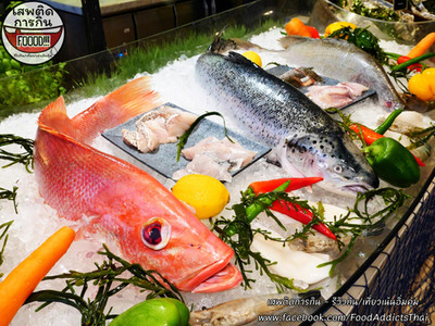 เนื้อปลาและซีฟู้ดต่างๆที่เราเห็นเมื่อกี้ ได้ถูกนำมาย่างเสร็จสรรพเป็นสเต็กพร้อมทาน ไม่ต้องตักวัตถุดิบพร้อมแนบเบอร์โต๊ะ รอเชฟมาเสิร์ฟแบบโรงแรมอื่น ได้ความสะดวกสบายเพิ่มขึ้นมา และนอกจากสเต็กปลาต่างๆคุณภาพสูงแล้ว ยังมีพาสต้าทะเลอบชีส (เป็นเมนูเด็ดที่แนะนำว่าตักไปทานเถอะครับรสชาติเข้มข้นหอมครีม/ชีสถึงใจมาก) สามารถทานได้กับน้ำจิ้ม 3 ชนิดได้แก่น้ำจิ้มซีฟู้ดสไตล์ไทย/น้ำจิ้มแจ่วอีสานและพริกน้ำปลา (พริกน้ำปลาเหมือนเอาไว้ทานกับกับข้าวอย่างอื่นในโซนอาหารร้อนนี้มากกว่า) เพราะอาหารยังมีอีกหลายเมนู ไปดูโซนต่อไปกันเลยครับผม