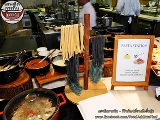 ต่อกันด้วยโซนพาสต้าที่ผัดสดจานต่อจาน เราสามารถเลือกซอสพาสต้าได้ 3 แบบ ทั้งซอสต้มยำแบบเข้มข้น / ซอสเห็ดทรัฟเฟิลและคลาสสิคซอส (คาโบนาร่า/นาโปลิตัน) เลือกเส้นได้ 4 แบบได้แก่เส้นพาสต้าแบนแบบปกติ / เส้นพาสต้าหมึกดำ / เส้นพาสต้าผักโขมและราวิโอลี่ไส้ฟักทอง โดยเราสามารถสั่งกับเชฟตรงนี้ แล้วรอรับไปทานที่โต๊ะได้ทันที ข้างๆกันเป็นอาหารไทย 3 อย่างสุดท้ายได้แก่ ปลากระพงนึ่งซีอิ๊ว / ข้าวผัดปูในซึ้งนึ่งร้อนๆและต้มยำกุ้งหม้อใหญ่ ตอนนี้เราก็สำรวจส่วนของอาหารคาวครบกันหมดแล้ว ได้เวลาตักอาหารเมนูต่างๆไปชิมที่โต๊ะกันเลยครับ