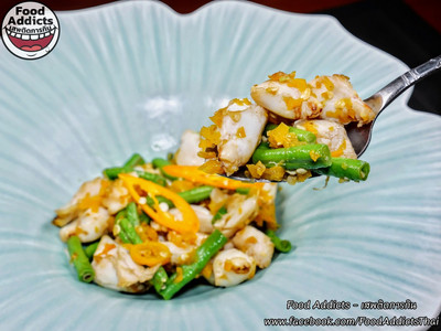รายการถัดไปเป็นเมนูแนวไทยเหมาะสำหรับผู้ชื่นชอบวัตถุดิบกลิ่นแบบรุนแรงโดยเฉพาะนั่นก็คือ "ผัดสามฉุน" ราคา 248 บาท ประกอบไปด้วยเมล็ดสะตอปักษ์ใต้,ยอดใบชะอมก้านอ่อน,กระเทียมโทนดองน้ำผึ้ง,วุ้นเส้นถั่วเขียวคุณภาพดีลวกแค่สุกนำผัดลงกระทะก้นหลุมลึกสไตล์ภัตตาคารดินแดนมังกรเร่งไฟสุดให้ติดไหม้ปลายจมูกเล็กน้อยใส่พริกขี้หนูเผ็ดร้อนสีสันสดใสสวยงาม เพิ่มโปรตีนด้วยไข่ไก่กับกุ้งแชบ๊วยไซส์ใหญ่ทิ้งหัวแกะเปลือกดึงเส้นดำกลางลำตัวออกเหลือปลายหางจับถือรับประทานสะดวกน็อกน้ำแข็ง-เกลือสมุทรอุณหภูมิติดลบเพื่อรักษาสัมผัสเด้งสู้ฟันฟินฉบับของแกล้มพร้อมกระดกเครื่องดื่มแอลกอฮอล์เย็นชื่นใจหรือคู่ข้าวสวยหอมมะลิหุงร้อนๆอร่อยเด็ดลงตัวครบทุกมิติ / "ผัดพริกเหลือง" สามารถเลือกได้ทั้งหมึกหรือกุ้งราคา 248 บาท / ทะเลรวมราคา 288 บาท / สำหรับวันนี้เราออเดอร์กรรเชียงปูราคา 448 บาท ปูม้าทะเลเกรดพรีเมียมคัดพิเศษเทียบส่งตรงจากเรือประมงพื้นบ้านจังหวัดสุราษฎร์ธานีขนาดจัมโบ้นึ่งสุกกรรเชียงเนื้อแน่นเต็มปากเคี้ยวหวานฉ่ำหัวหน้าเชฟจัดการเตรียมพริกขี้หนู,พริกชี้ฟ้าสีเหลือง,กระเทียมโขลกบนครกหินแหลกละเอียดเจียวน้ำมันพืชจนส่งกลิ่นหอมเอกลักษณ์ตำรับโบราณฟุ้งกระจายฉุนแสบจมูกเคล้าทุกอย่างพอเข้ากันเติมถั่วฝักยาวหั่นท่อนกรุบกรอบปรุงรสชาติเค็มเผ็ดกลมกล่อมไม่ติดหวานครับผม