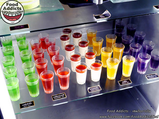 ใครที่เคยเข้าร้าน Senju มาก่อนก็บอกได้เลยว่าไลน์อาหาร-ขนมหวานเหมือนกันแค่ตัดผักสดไข่ไก่กับเส้นต่างๆออกไป เครื่องดื่มรวมในราคาบุฟเฟ่ต์เรียบร้อยสามารถเดินมากดได้ด้วยตัวเองทั้ง น้ำอัดลม (โคล่า/น้ำส้ม/น้ำเขียว/น้ำแดง/น้ำมะนาว/โซดาเปล่า) ตู้กดข้างๆกันเป็นน้ำเปล่าแช่เย็น/ชาเขียวมัทฉะ/น้ำโอเชียนบลู/นมสดไต้หวันหอมมันสำหรับประกอบร่างรวมกับไข่มุกและบุกต้มในน้ำตาลบราวน์ชูการ์ ส่วนชาเขียวร้อนนั้นแบ่งเป็นผงมัทฉะกับตู้น้ำร้อนให้กดผสมเติมความเข้มข้นได้ด้วยตัวเอง ขนมหวาน-ผลไม้สดตัดแต่งก็เดินมาหยิบเองในตู้แช่เย็นได้เองทั้ง เยลลี่รสสตรอเบอรี่/เยลลี่รสส้ม/เยลลี่รสแอปเปิ้ล/เยลลี่รสแบล็คเบอรี่/พาตาคอตต้าสตรอเบอรี่ กระทะแพนเค้กมีให้ทำเองเช่นเคยเพียงใส่เนยกับแป้งผสมสำเร็จลงบนเตาวาดเป็นรูปทรงต่างๆราดด้วยเมเปิ้ลไซรัปตามใจ เครื่องทำฟองดูว์ใส่ช็อกโกแลตละลายสำหรับเสียบมาร์ชเมลโลว์/เยลลี่เคลือบน้ำตาลและผลไม้แช่เย็นลงไปเคลือบ ตู้ปั่นน้ำแข็ง/ราดน้ำเชื่อมกลิ่นต่างๆกับนมข้นหวานออกมาเป็นเมนูน้ำแข็งใสข้างๆกันเป็นโมจิสอดไส้และถั่วแดงญี่ปุ่นบดไว้ทานคู่กัน ท้ายสุดก็คือตู้ไอศครีมให้เดินมาตักเองรวมกว่า 6 รสชาติ ใครมีไอเดียอะไรก็ปรุงเป็นเมนูใหม่ได้ตามใจตัวเองเลยครับผม