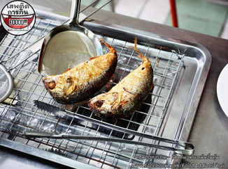 ถามแฟนว่าจะลองปลาทูทอดไร้ก้างไหม ? จะได้สั่งมาชิมคนละตัว ปกติสั่งกลับบ้านตัวละ 35 บาท แต่ถ้าทอดทานที่ร้านเพิ่มอีก 5 บาท เป็นตัวละ 40 บาท แฟนผมอยากลองด้วยเลยสั่งมา 2 ตัว ทางร้านก็จะนำไปทอดให้ใหม่ๆ ถามว่าทำไมถึงไร้ก้าง ทั้งที่เห็นเป็นตัวเต็มๆ ไม่ได้เลาะก้างออกให้สักหน่อย ? ทางร้านบอกว่าปลาทูนี้ผ่านการฆ่าเชื้อในอุณหภูมิสูง ทำให้เก็บรักษาได้นานเป็นปี ใช้หลักการเดียวกับปลากระป๋อง นี่ก็ถึงบางอ้อเลยครับ ปลาทูทอดร้อนๆ ทางร้านเสิร์ฟมาให้ทานคู่กับน้ำจิ้มซีฟู๊ด ข้างนอกเค็มกรอบ ด้านในเนื้อสุกแห้งไม่ค่อยมัน เหมือนว่าไขมันปลาหายไปในกระบวนการทำให้ก้างนิ่มหมดแล้ว แลกกับการทานง่ายและเก็บรักษาได้นาน ส่วนตัวว่าปลาทูไร้ก้างเนื้อแห้งแบบนี้ เหมาะกับการทานแบบคลุกข้าวสวยหรือทานกับน้ำพริกกะปิ เหมาะกว่าเอามาทานกับน้ำจิ้มซีฟู๊ดเปล่าๆอีกนะครับ