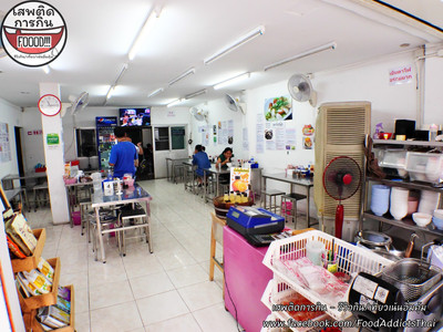 หน้าร้านก็เป็นห้องแถวที่ดูธรรมดาๆ ไม่ได้ตกแต่งหวือหวาอะไรมากนัก แต่ที่สำคัญคือร้านตกแต่งด้วยสีขาวที่ดูสะอาด ใช้โต๊ะและเก้าอี้สแตนเลสที่ดูมันวาว นอกจากเมนูก๋วยเตี๋ยวและลูกชิ้นที่เป็นหลักของทางร้านแล้ว ยังมีเมนูทานเล่นอื่นๆอย่างเกี๊ยวกรอบซอสพริกเผาชุดละ 40 บาท เต้าฮวยเนื้อมะพร้าวอ่อน ปลาทูทอดไร้ก้าง (น่าสนใจ) ตัวละ 40 บาท มีข้าว/ขนม/ไอศครีมต่างๆอีกเพียบ ดูแล้วจะเป็นร้านที่ดูจับฉ่ายไปหน่อย (สอบถามทีหลังได้ความมาว่าเจ้าของร้านนี้ชอบตระเวณกิน เห็นสินค้าไหนอร่อยหรือน่าสนใจก็จะเอามาขายที่ร้านของตัวเองครับ) เป็นร้านของคนที่ชื่นชอบการกิน แต่จะทำอาหารอร่อยมั้ยนั้นอีกเรื่อง เดี๋ยวเราหาที่นั่งภายในร้าน แล้วเริ่มสั่งอาหารมาชิมกันเลยครับ