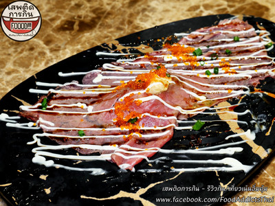ใครไม่ทานเนื้อวัวไม่ชอบกลิ่นของแกะแต่ก็เบื่อจะทานหมูหรือไก่ธรรมดาๆแนะนำว่าให้สั่งจานนี้คือ "สเต็กทูน่า" เป็นเนื้อปลาทูน่าส่วน Akami ไร้ไขมันเอามาทอดให้ด้านนอกกรอบเนื้อในสีชมพูกึ่งๆซาชิมิทานกับน้ำสลัดญี่ปุ่นและผักสดโรยด้วยงาคั่ว ตอนแรกเราไม่ได้คาดหวังรสชาติมากเพราะหลายร้านที่มักจะเอาปลาโอราคาถูกเนื้อเหม็นคาวเลือดมาปรุงให้ทานแต่ร้านนี้กล้าฟันธงเลยว่าใช้ทูน่าของจริง เพราะสัมผัสของเนื้อปลาตอนเคี้ยวเหมือนสเต็กเนื้อวัวที่ไม่มีกลิ่นและไขมันของวัวแถมยังรู้สึกสดชื่นทานง่ายดีกว่าที่คิดเอาไว้เยอะมากๆแนะนำให้สั่งเลยครับผม จานต่อไปใครที่ชอบทานเมนูนี้อยู่แล้วต้องถูกใจเพราะร้านอาหารทั่วไปขายค่อนข้างแพงแต่ที่นี่เสิร์ฟให้ไม่อั้นนั่นคือ "ซี่โครงหมูบาร์บีคิว" ตัดแบ่งมาทีละ 2 ท่อนใหญ่ตุ๋นจนเนื้อหลุดออกจากกระดูกแล้วย่างด้วยซอสบาร์บีคิวจนเข้าเนื้อดีแต่ค่อนข้างเข้าข้นเกินไปหน่อย ถ้าใครอยากทานอร่อยๆแนะนำให้สั่งมาตั้งแต่ช่วงแรกๆนะครับตอนท้ายๆต่อมรับรสเริ่มอ่อนล้ารับรสชาติไม่ค่อยไหวแล้ว ตามมาด้วยสปาเก็ตตี้ 2 อย่างสุดท้ายคือ "สปาเก็ตตี้ต้มยำกุ้งแม่น้ำ" และ "สปาเก็ตตี้ทรัฟเฟิลฟัวกราส์" รสชาติเข้มข้นถึงใจเครื่องต้มยำและไวท์ซอสทรัฟเฟิลโดนใจสุดๆแถมเสิร์ฟคำเล็กจิ๋วแบบนี้ทำให้เหลือพื้นที่ในกระเพาะไว้ไปทานเมนูอื่นได้อีกเพียบ ตอนนี้เริ่มอิ่มแล้วแต่ของหวานที่ร้านนี้ก็เด็ดกดสั่งมารัวๆเลยครับ