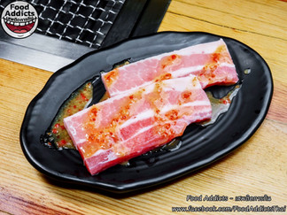 สายเนื้อสัตว์ตัวจริงร่างกายต้องการโปรตีนจำนวนเยอะมากนอกจากเซตสุดคุ้มแล้วทางร้านยังจำหน่ายวัตถุดิบแยกใส่จานเดี่ยวฉบับ A La Carte ให้เราได้เลือกชิมหลายๆรายการเริ่มต้นกันด้วย "เนื้อสันนอกสตริปลอยน์ A4" ราคา 300 บาท วัวสายพันธุ์คุโรเกะขนสีดำสนิทถูกเลี้ยงภายในฟาร์มเมืองคาโกชิม่าบริเวณเกาะคิวชูซึ่งถูกล้อมรอบด้วยธรรมชาติอันอุดมสมบูรณ์ทั้งมหาสมุทรและเทือกเขาอากาศเย็นสบายตลอดปีจึงเหมาะแก่การทำฟาร์มปศุสัตว์ให้อาหารออร์แกนิกชั้นดีขุนใช้เวลายาวนานหลายเดือน ตัดเสิร์ฟส่วนสันนอกใกล้กระดูกสันหลังขยับร่างกายน้อยจึงแทรกชั้นไขมันละเอียดเรียงแน่นแลดูสวยงามอลังการประดุจลายหินอ่อนเข้าเครื่องสไลซ์แผ่นขนาดหนาวางเรียงเต็มจานอูมามิกลมกล่อมแทบละลายทันทีเมื่อนำเข้าปาก / "เนื้อวัวพรีเมียมพื้นท้อง US Short Plate" ราคา 99 บาท สัญชาติอเมริกันรสชาติเข้มข้นกลิ่นหอมเด่นชัดลักษณะภายนอกแลดูเหมือนหมูสามชั้นให้เยอะเกินคุ้มห้ามพลาดเด็ดขาด / "เนื้อวากิวคารูบิ" ราคา 99 บาท หน้าอกยาวจนไปถึงช่องท้องไขมันเรียงกันแนวยาวสไลซ์แผ่นบางปิ้งย่างสุกง่ายรับรองว่าอร่อยเด็ดถูกใจเหล่า Beef Lovers อย่างแน่นอน / "เนื้อใบพาย" เป็นวัวญี่ปุ่นแท้ผสมกับออสเตรเลียร่วมกันพัฒนาเพื่อรักษาจุดเด่นไว้สัมผัสเคี้ยวนุ่มชุ่มฉ่ำแม้ว่าจะมีเอ็นคอลลาเจนพาดตรงกลางยาวตลอดแนวครับผม